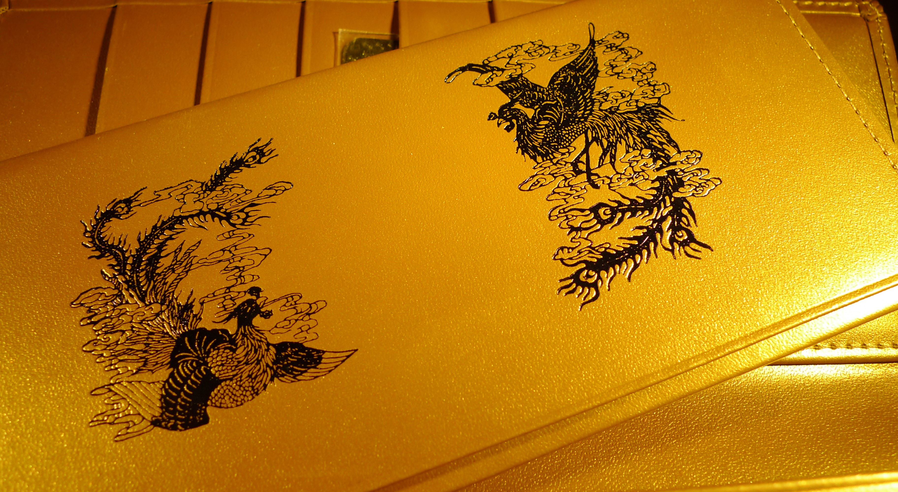 秘密の隠しポケットに描かれた向い鳳凰のデザインは、向い龍のエネルギーと共鳴し、元気・やる気とともに願い事を叶えてくれるパワーを生み出してくれます。